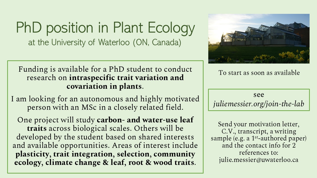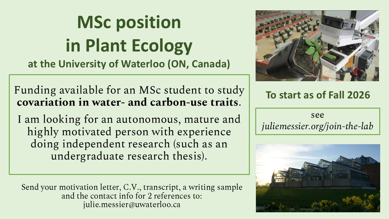 - Have a strong interest in a combination of plant ecophysiology, community ecology and trait-based ecology;